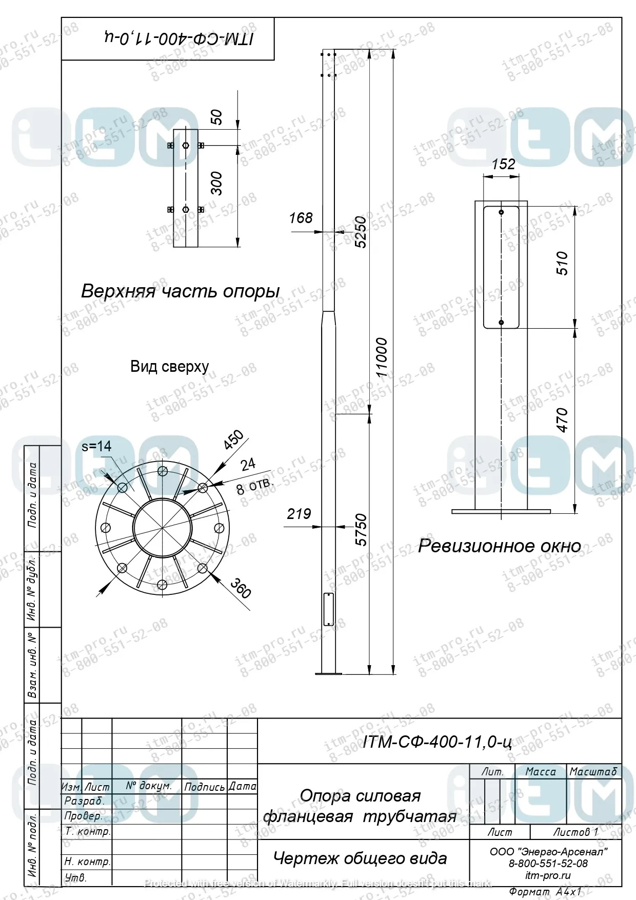 Опоры СФ-400-11,0 – это силовые фланцевые трубчатые опоры, которые способны выдерживать нагрузку до 400 кг, высота столба - 11 метров.