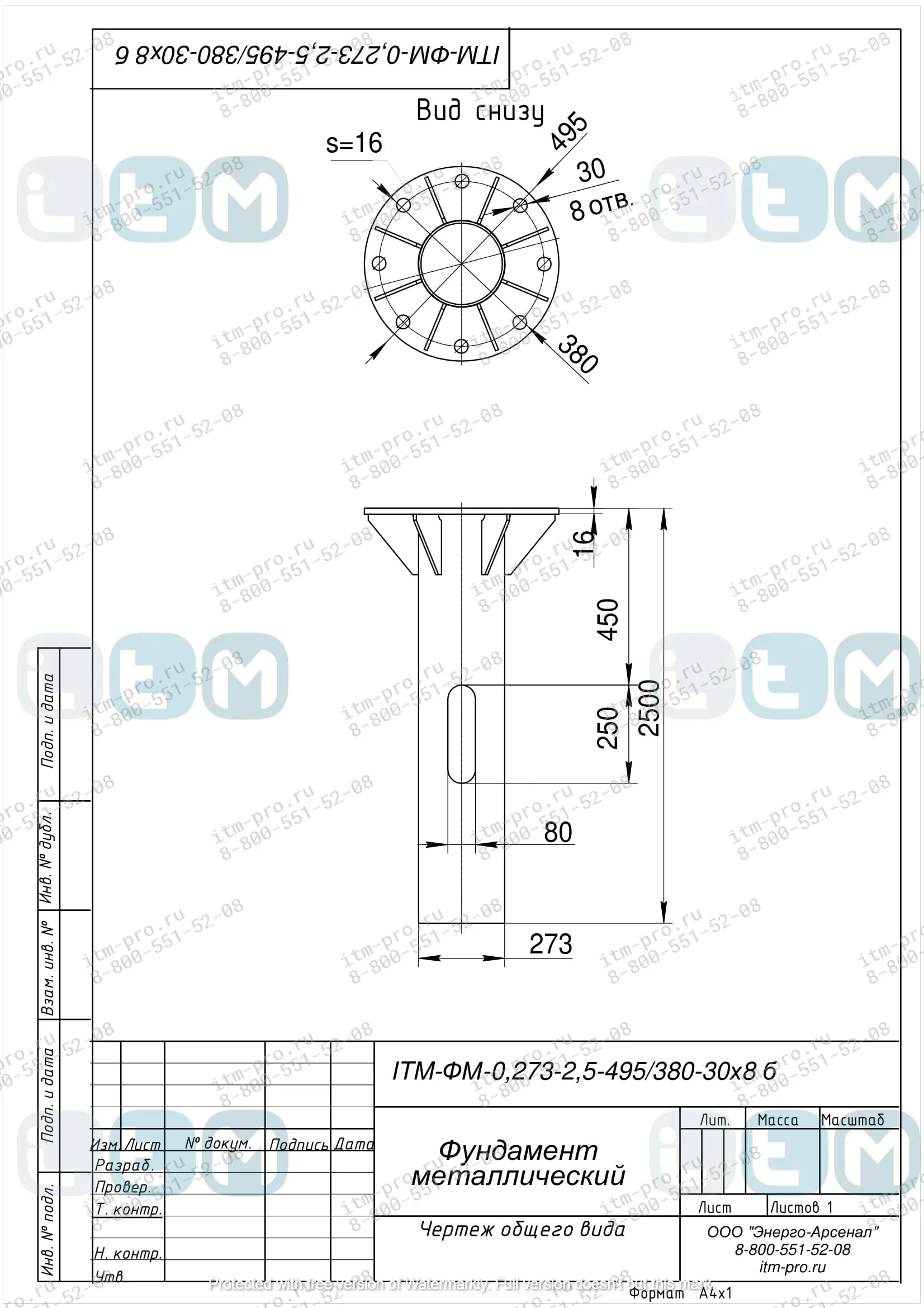 Характеристики закладных деталей фундамента ЗДФ-0,273-2,5-495/380-30х8 б